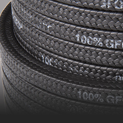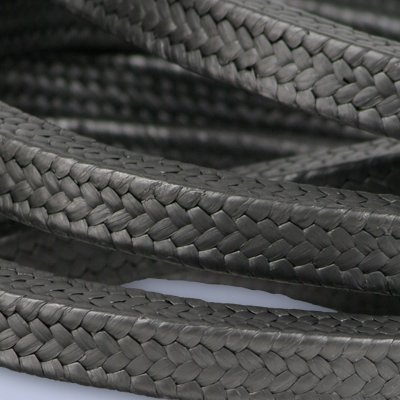 Empaquetadura intertrenzada con filamentos de PTFE expandido con grafito y lubricante de rodaje. Fibra 100% GORE® GFO®.