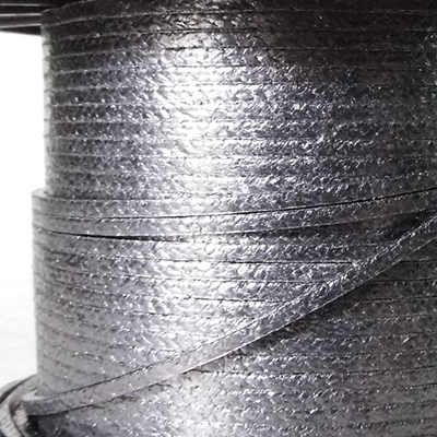 Empaquetadura intertrenzada con filamentos de PTFE expandido con grafito y lubricante basado en grafito.
