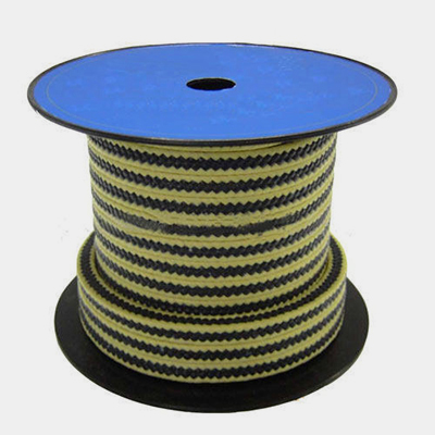 Empaquetadura intertrenzada con filamentos discontinuos de para-aramida, impregnados con PTFE y lubricante de rodaje.